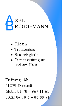 Sehen Sie bitte meine kleine, hier gezeigte Projektauswahl lediglich als Anregeung ohne den Anspruch auf Vollständigkeit meiner bereits ausgeführten Arbeiten zu erheben.